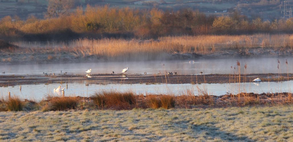 One of the best sounds on the reserve in mid-winter is the whistling call of the Wigeon. The best place to hear it is from either the Tower Hide or the North Pool Hide next door. Big flocks of Wigeon are constantly whistling to each other!