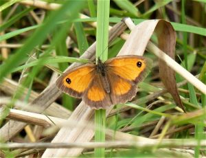 The Gatekeeper loves hedges, especially those with bramble flowers and there are lots of those along the reserve tracks!