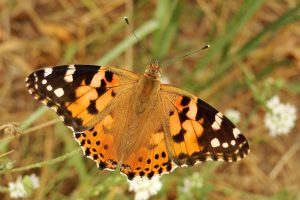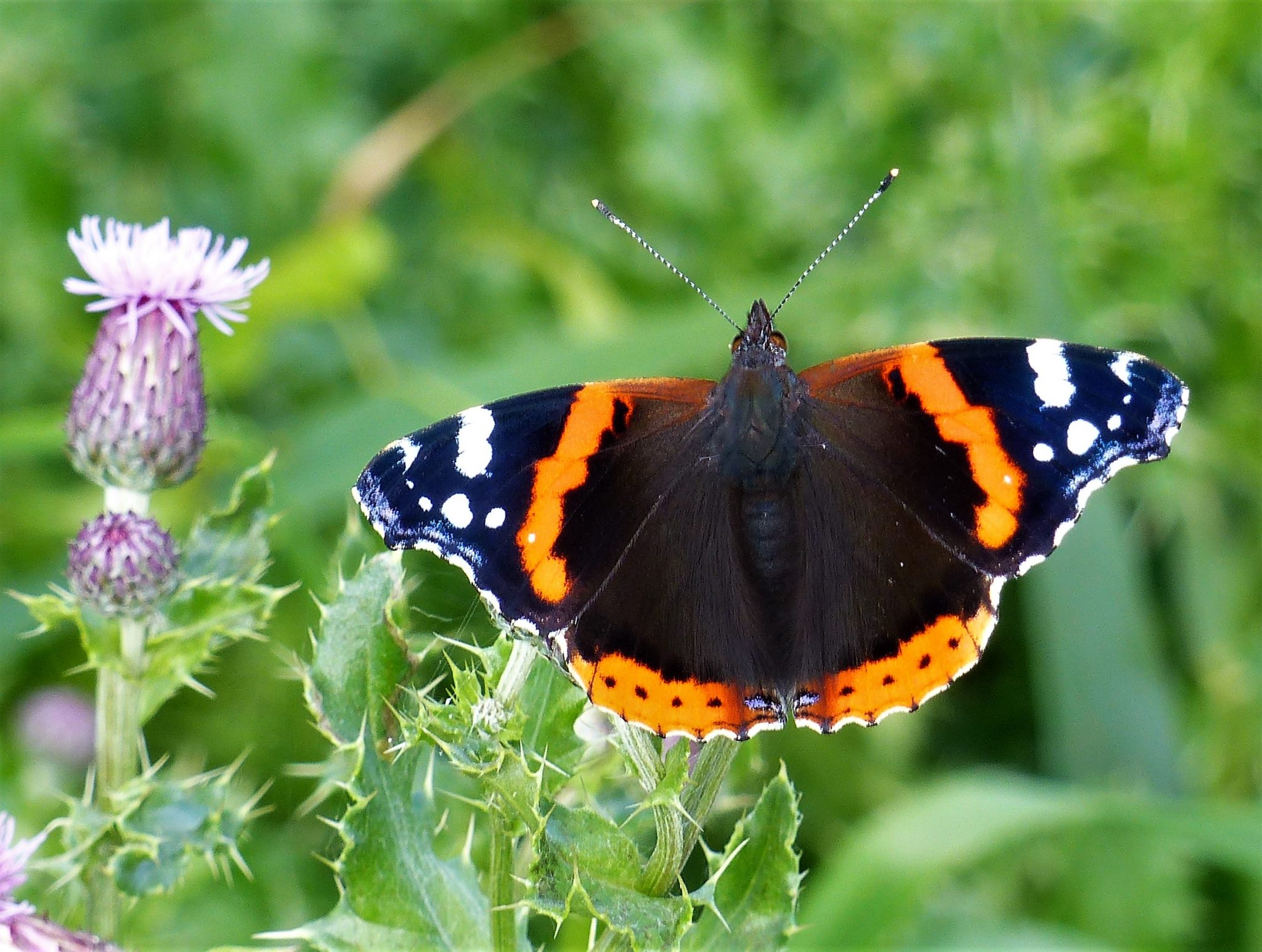 Some butterflies are easy to recognise – like these two! Here they are feeding on thistle flowers, but both of them love Buddleia flowers, which make it a great shrub to have in your garden.