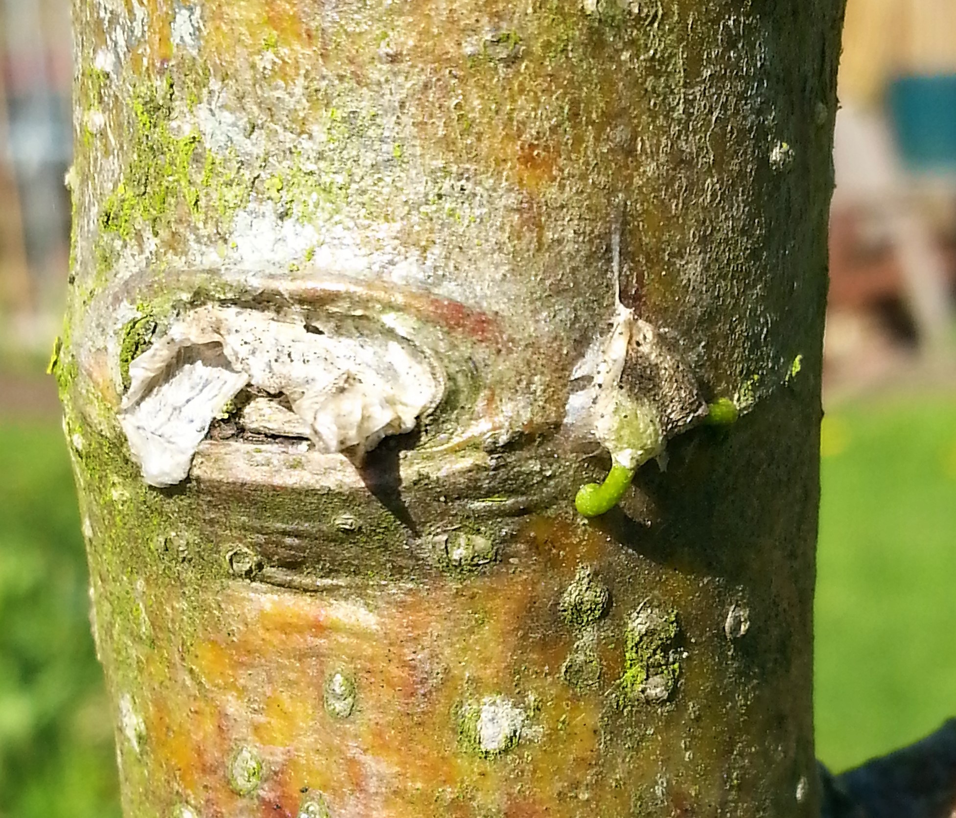 The seed then grows a root, which burrows through the bark of the tree and into the sapwood inside. Here is a picture of this happening on a tree in my garden.