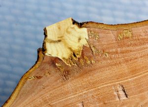 …and here is a slice through a branch showing the mistletoe roots (white) growing into the wood of the tree