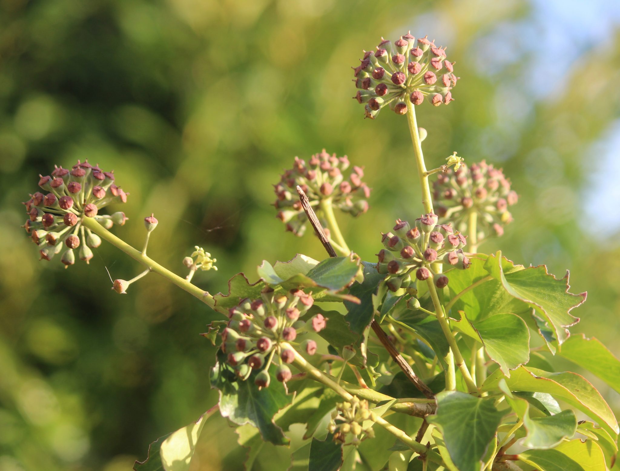 Only mature ivy, distinguished by un-lobed leaves, will flower then fruit.