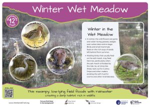 There are 12 permanent posts in the Wetlands Trail. Eleven are installed by the key habitats on Portbury Wharf Nature Reserve and one post (No. 9) is on the Ecology Park. They tell you about each of the habitats and show you the creatures that you might see there.